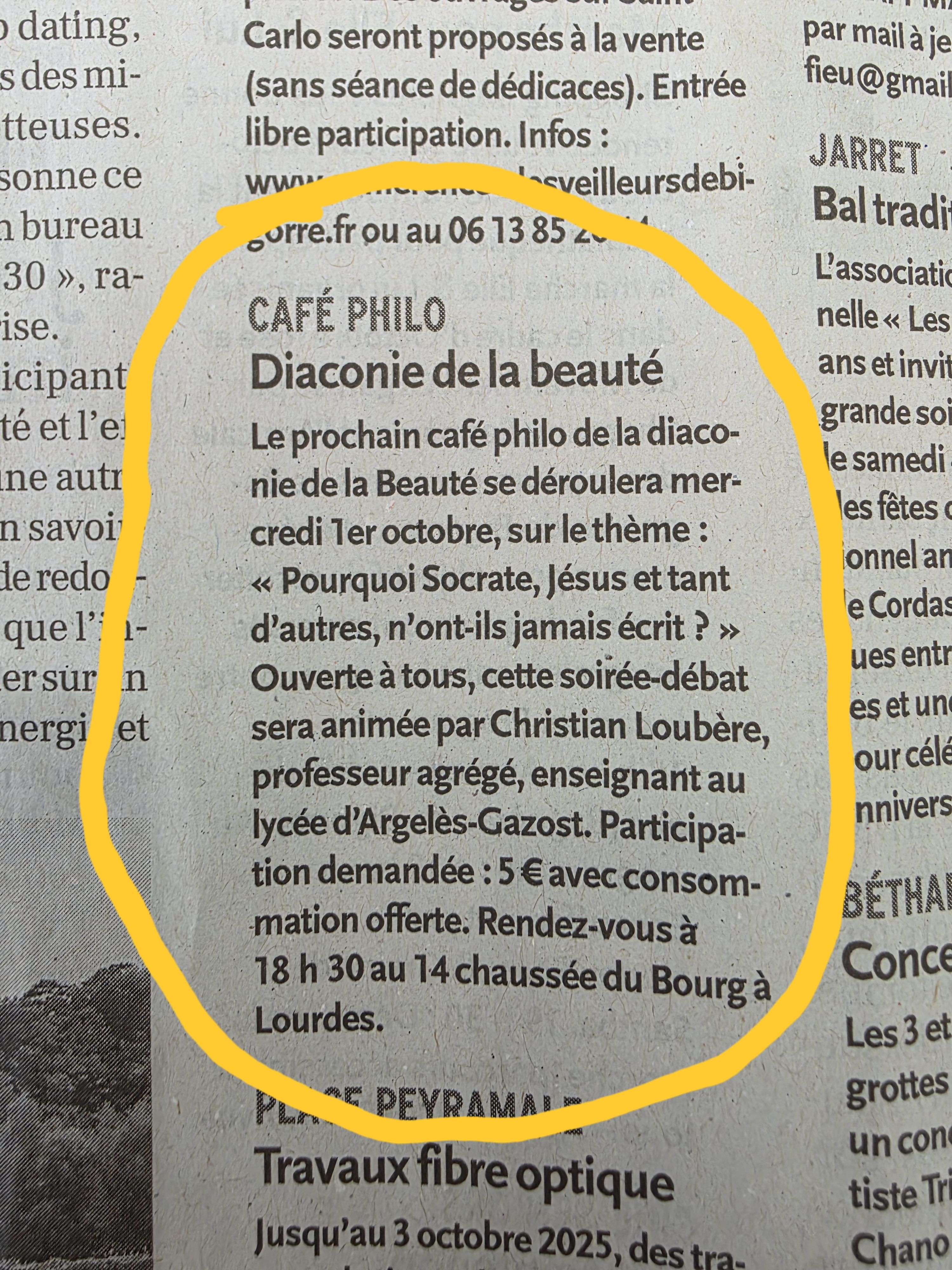 Le prochain café philo de la Diaconie se déroulera le 1er octobre